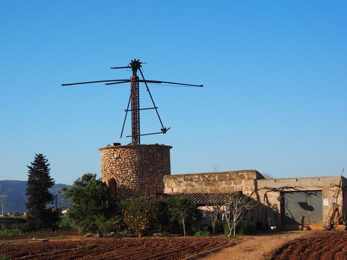 Keywords: windmill old lapsed ruin mallorca muro mill wind energy wing wind power dilapidated agriculture meaningless broken bauruine bleak leave hof farm ranch