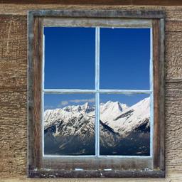 Keywords: window old hut kahl mountains winter landscape snowy ski area
