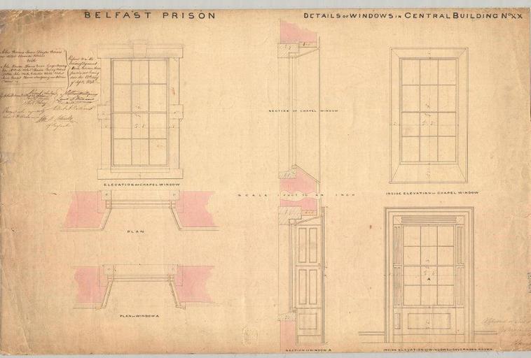 Keywords: texture Collection: Antrim Crown and Peace -- Belfast Bridewell Records Date: c.1842 Original Format: Plan Plan of details of windows and central building, Crumlin Road Gaol -- drawn by Sir Charles Lanyon PRONI Ref: ANT/4/11/23 Copying and copyright: Please see www.proni.gov.uk/index/research_and_records_held/copying_... For Copy Orders, contact: Email: proni@dcalni.gov.uk Collection: Antrim Crown and Peace -- Belfast Bridewell Records Date: c.1842 Original Format: Plan Plan of details of windows and central building, Crumlin Road Gaol -- drawn by Sir Charles Lanyon PRONI Ref: ANT/4/11/23 Copying and copyright: Please see www.proni.gov.uk/index/research_and_records_held/copying_... For Copy Orders, contact: Email: proni@dcalni.gov.uk |