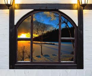 Keywords: window snow lights lighting december winter atmosphere light candlelight blue contemplative mood