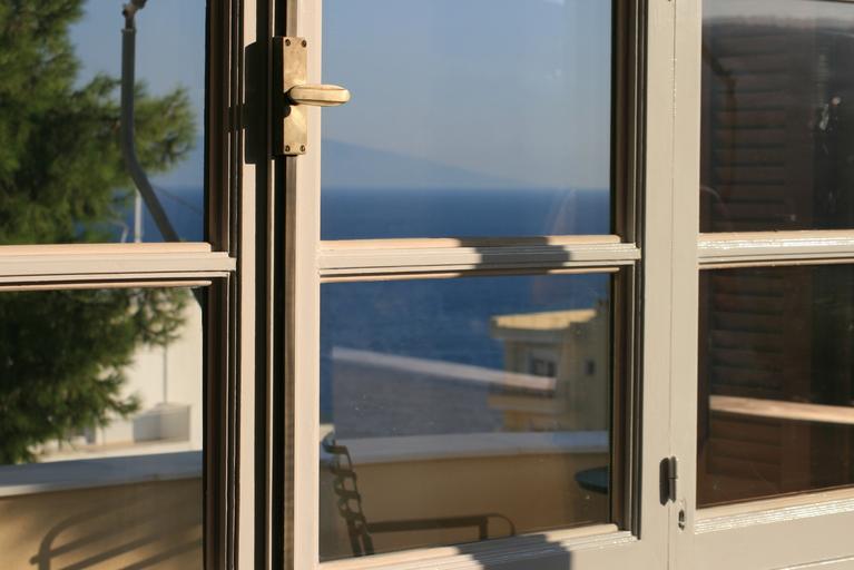 Keywords: window views sea house summer colors building tree sky blue sea view pine pine trees
