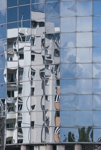 Keywords: windows reflection building sky clouds urban architecture mirror