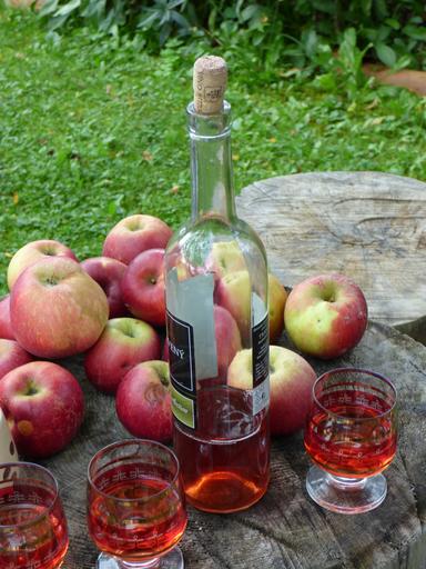 Keywords: wine a bottle apples