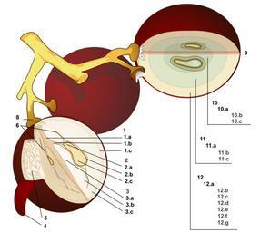 Keywords: Wine grape diagram numbered.svg validSVG numbered version from Image Wine grape diagram en svg Diagram of the wine grape berry Please note each locular cavity contains two seeds Labels 1 -Vascular Bundles 1 a -Central 1 b -Ovular 1 c -Peripheral network 2 -Seed 2 a -Embryo 2 b -Coat 2 c -Endosperm 3 -Flesh 3 a -Septal 3 b -Inner 3 c -Outer 4 -Skin 5 -Peripheral vascular bundles 6 -Locules 2 seeds pro cavity 8 -Pedicel 9 -Point of rupture 10 -1 Central zone 10 a -Second pressing 10 b -malic acid 10 c -sugar 11 -2 Intermediate zone 11 a -First pressing 11 b -tartaric acid 11 c -sugar 12 -3 Peripheral zone 12 a -Third pressing 12 b -astringency 12 c -potassium 12 d -aromas 12 e -acidity 12 f -acidity 12 g -oxidases PGIP Own work by LadyofHats some of the sources include http //fruitspecies blogspot com/2007/10/grape-calmeria-grape_10 html http //www wineaustralia com/australia/Portals/2/wceimages/01GrapeBerry jpg http //www practicalwinery com/JulyAugust02/julaug02p14 htm http //www diwinetaste com/html/dwt200405/images/SezioneUvaEn gif http //www nicks com au/upload/image/image_200772412555553 jpg http //www anthonares net/lund_et_al_2006 jpeg and http //jxb oxfordjournals org/content/vol51/issue345/images/medium/coverfig gif 2008-08-17 Mariana Ruiz Villarreal LadyofHats LadyofHats Other versions/Wine grape diagram Drawings of grapes Fruit diagrams Philip Greenspun illustration project Language-neutral diagrams |