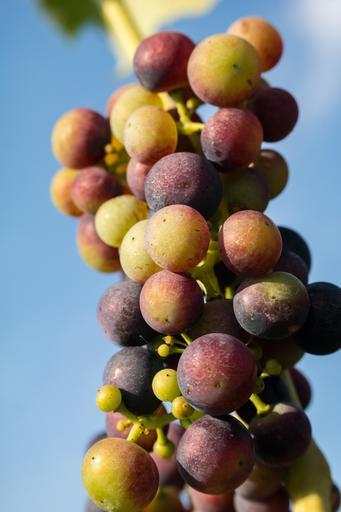 Keywords: wine grapes immature pinot noir fruit vine cultivation winegrowing vineyard grapevine sky blue ahr valley germany