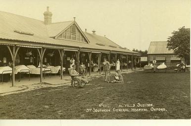 | Keywords: world war one worldwarone wwi convalescent hospital wounded monochrome outdoor Local Accession Number: PC 85 Description: Convalescent area at the 3rd Southern General Hospital in Oxford, England. Photographer: Unknown Source: Collection of Anna Nevins Size: 3x5 Medium: Print, Sepia Date: c. 1918 Local Accession Number: PC 85 Description: Convalescent area at the 3rd Southern General Hospital in Oxford, England. Photographer: Unknown Source: Collection of Anna Nevins Size: 3x5 Medium: Print, Sepia Date: c. 1918 |