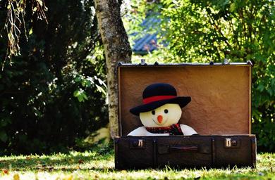 Keywords: winter ade snow man send away luggage antique funny leather old suitcase junk generations travel go away wave