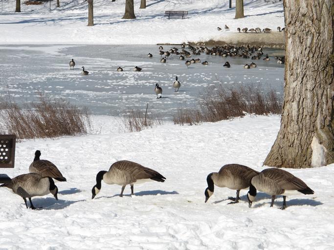 Keywords: winter animals birds snow nature wildlife canada goose north american goose frozen lake