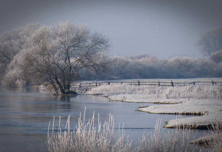 Keywords: winter bank river trees snow mood frosty wintry cold water idyllic nature