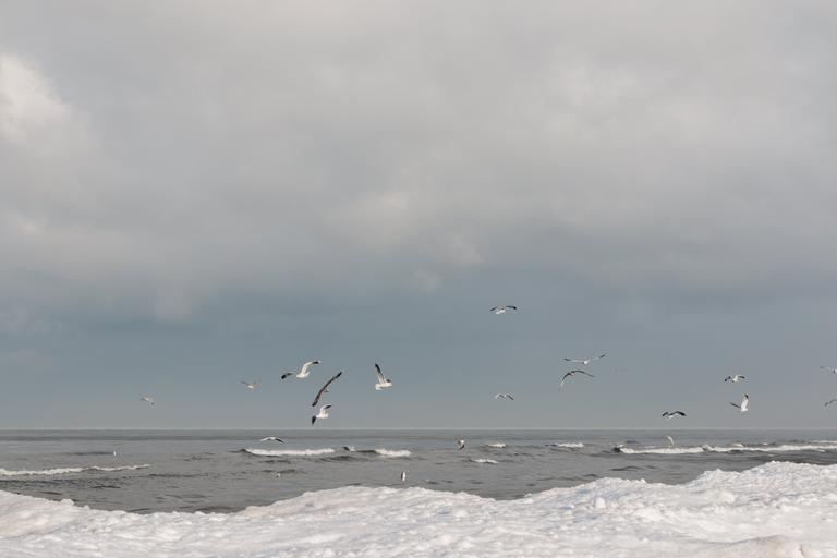 Keywords: latvia jurmala baltic sea balticsea gulf of riga gulfofriga bay seaside beach winter snow ice water gulls seagulls seabirds birds shore coast waves outdoor Jurmala beach in winter Jurmala beach in winter