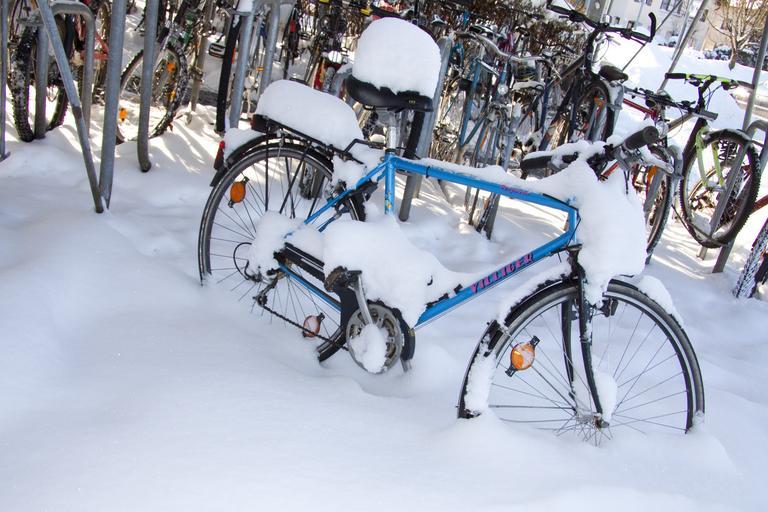 Keywords: winter bike snowed in snow wheel snowy cold white saddle bicycle saddle