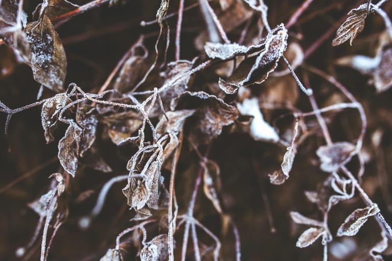 Keywords: winter frozen frost branch branches leaf leaves close up plant nature snow