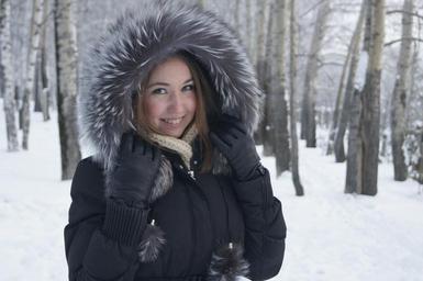 Keywords: winter girl smile snow person forest trees beautiful siberia tomsk cold hair
