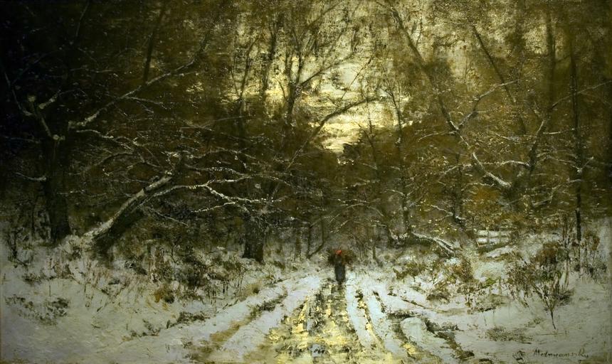 | Keywords: Winter landscape by Mednyánszky.jpg  Téli táj Winter Landscape Oil on canvas 72x120 5 cm Hungarian National Bank own ; Photo by Szilas at the exhibition in the Gallery of Judit Virág Budapest Creator László Mednyánszky PD-old-auto 1919 Other versions Landscapes by László Mednyánszky Paintings of country roads in winter |