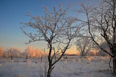 Keywords: winter morning rime tree fence