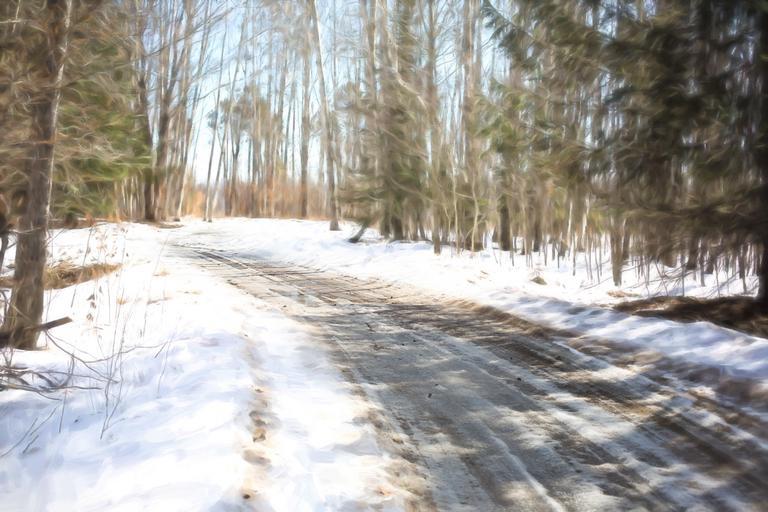 Keywords: winter road snow snowy country drive woods
