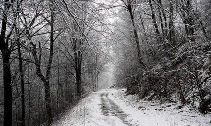 Keywords: winter snow cold season white rural country mountain road outdoors west virginia usa landscape trees forest rugged nature