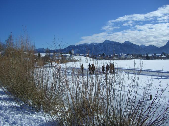 Keywords: winter snow lake ice curling ground athletes mountain panorama alpine allgäu ostallgäu white sky blue cloud sunny