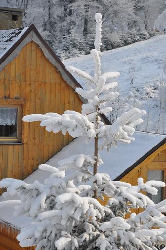 Keywords: winter snow spruce mountains cottage view landscape szczyrk white poland
