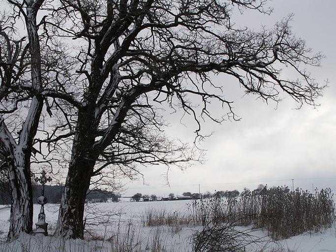 Keywords: winter snow tree snowy cross dry grass lime trees clouds gray czech budejovice nottingham