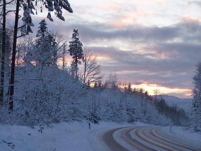 Keywords: winter trees snow road slippery roads roadway black ice wintry cold white