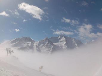Keywords: winter winter sports sölden glacier tiefenbach glacier snowboard ski mountain alpine austria summit mountains clouds top landscape sky sun freedom wide snow cannon artificial snow snow snow arm