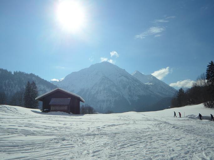 Keywords: wintry back light winter snow allgäu mountains hut alpine allgäu alps mountain panorama mountain snowy sunshine deep snow
