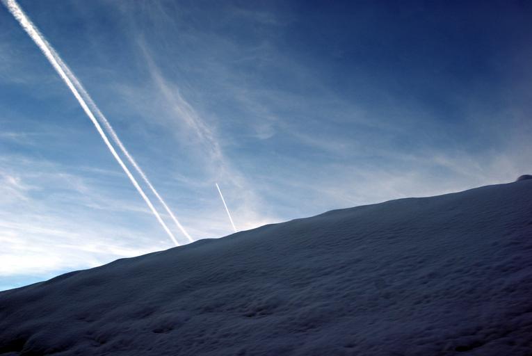 Keywords: wintry snow contrail sky jet trails landskape winter