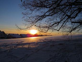 Keywords: wintry sunset sun fields snowy winter cold tree aesthetic back light