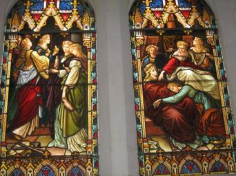 Keywords: Wise and foolish.jpg Depiction of the Parable of the Ten Virgins Photograph of stained glass window at Scots' Church Melbourne Own 2007-10-28 StAnselm Stained glass windows of Ten virgins Stained glass windows in Australia Scots' Church