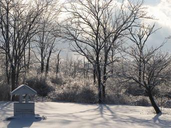 Keywords: wishing well ice snow trees field farm