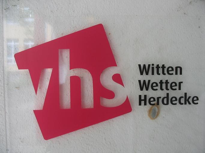Keywords: Witten Schild VHS.jpg en sign with logo of VHS Witten/Wetter/Herdecke de Schild mit Logo der VHS Witten/Wetter/Herdecke own Reclus 2013-06-16 Signs in Witten Cc-zero