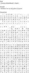Keywords: Wmfont century schoolbook l italic.svg en Sample rendering of font Century Schoolbook L Italic Own Mktyscn 2009-09-10 Valid SVG Typeface samples Century Schoolbook