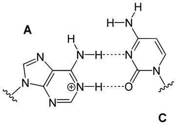 Keywords: Wobble base pair AC.svg en Wobble base pair adenine cytosine AC de Wobble Basenpaar Adenine Cytosin AC Own Yikrazuul 5 11 08 DNA chemical structures Base pairing