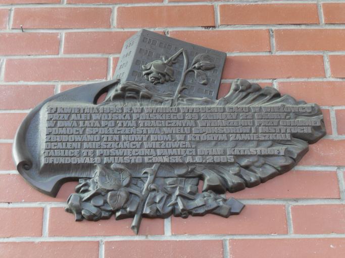 Keywords: Wojska Polskiego 39 w Gdańsku.jpg pl Tablica na ścianie domu przy ul Wojska Polskiego 39 w Gdańsku który stanął w miejscu wieżowca uszkodzonego po wybuchu gazu w 1995 r own Artur Andrzej 2011-04-11 Cc-zero Wojska Polskiego Avenue in Gdańsk History of Gdańsk Disasters and accidents in Gdańsk Plaques in Gdańsk |