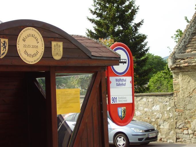 | Keywords: Wolfsthal bus station 2.jpg Wolfsthal bus station for international public transport buses from/to Bratislava Slovakia Own 2008-05-25 Wizzard Own work all rights released Public domain Wolfsthal Bus stops in Austria Bus shelters in Austria Wooden shelters Bus stop signs |