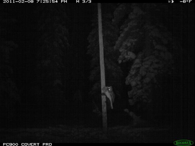 | Keywords: glacier national park glaciernationalpark nps montana national park service nationalparkservice wolverine trail camera trailcamera gulo gulo gulo gulogulo dna weasel mustelidae wilderness deer leg deerleg bait monochrome blackandwhite black and white This remote trail camera picture is of a wolverine (Gulo gulo) who has stolen our bait (a deer leg) from a hair snare tree. We are collecting wolverine DNA from hair samples in an effort to determine our wolverine population. The wolverine runs up the tree to get the bait and leaves its hair on wire brushes fastened to the tree. The hair is collected and sent to a lab. The project is nearing its end. Numbers will be tallied at a future date. The wolverine is the largest terrestrial member of the mustelidae (weasel) family. The wolverine has a reputation for ferocity and strength out of proportion to its size, with the documented ability to kill prey many times its size. (dr) This remote trail camera picture is of a wolverine (Gulo gulo) who has stolen our bait (a deer leg) from a hair snare tree. We are collecting wolverine DNA from hair samples in an effort to determine our wolverine population. The wolverine runs up the tree to get the bait and leaves its hair on wire brushes fastened to the tree. The hair is collected and sent to a lab. The project is nearing its end. Numbers will be tallied at a future date. The wolverine is the largest terrestrial member of the mustelidae (weasel) family. The wolverine has a reputation for ferocity and strength out of proportion to its size, with the documented ability to kill prey many times its size. (dr) |