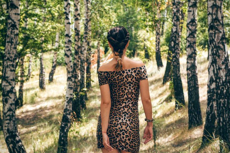Keywords: woman back view figure person forest woods walking alone female girl attractive lady lonely outdoor young loneliness