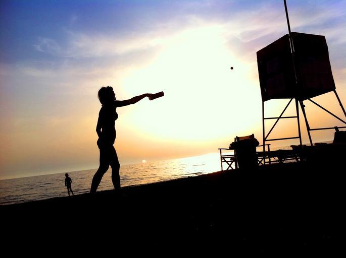 Keywords: woman beach back light silhouette sport ball bat active speedello
