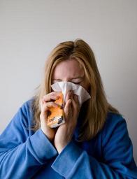 Keywords: woman blow blowing nose hand chief grey blond female model person people face ill allergy hospital disease white medicine sick flu protection virus sickness winter antiviral patient illness healthcare blue