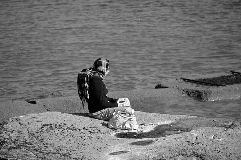 Keywords: woman character solitude meditation black and white humans people free image cold