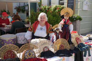 Keywords: woman costume doll sell market handmade hats old fashioned