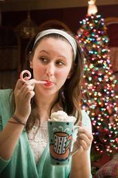 Keywords: woman drinking hot chocolate christmas tree christmas tree drink chocolate mug beverage holding cup holiday xmas warm celebration season