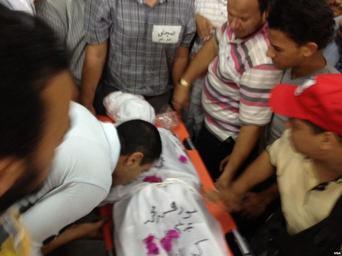 | Keywords: Woman killed at Rabia el-Adawiya mosque in Cairo 27-July-2013.jpg en A Morsi supporter kisses the body of a woman killed in early morning clashes with security forces at Rabia el-Adawiya mosque in Cairo July 27 2013 Elizabeth Arrott/VOA de Ein Mursi-Unterstützer küsst den Leichnam einer Frau die bei den frühmorgendlichen Zusammenstößen mit Sicherheitskräften an der Rabia-al-Adawija-Moschee in Kairo am 27 Juli 2013 getötet wurde Elizabeth Arrott/VOA http //gdb voanews com/1CE6AA44-C41E-49E3-AA8C-9FF820AFC74E_mw1228_mh548_s jpg Elizabeth Arrott/VOA 2013-07-27 PD-USGov-VOA Sources image embedded 1 http //www webcitation org/6LjXT3UvO Clashes in Egypt Voice Of America 27 July 2013 archived from the http //www voanews com/media/photogallery/1711271 html original on 9 December 2013; 2 http //www voanews com/content/death-toll-rises-in-egypt-protests/1711153 html; 3 http //www voanews com/content/cairo-protesters-ignore-military-orders-to-disperse/1711546 html Demonstrations and protests in Egypt in 2013 Human corpses 2013 coup d'état in Egypt |