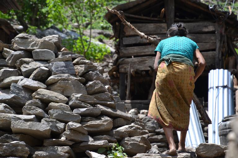 Keywords: woman old human old woman nepal stones wood work
