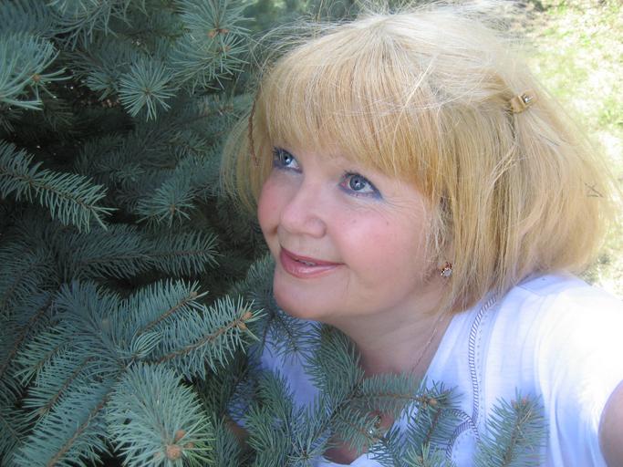 Keywords: woman person summer portrait christmas tree landscape outdoors blond smile forest