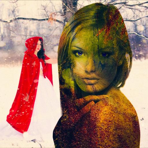 Keywords: woman photo snow red white forest manipulation mix exclusion riding hood leaves fairytail winter season cold nature female girl outdoor ice people frozen smiling portrait digital adult