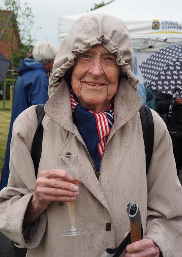 Keywords: woman rain rain coat bubbler champagne champagne glass older pensioner