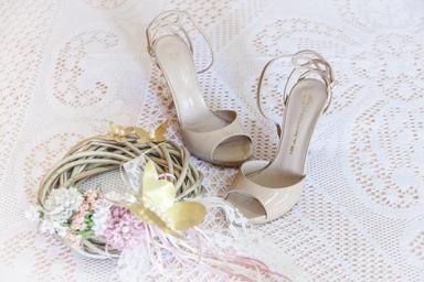Keywords: woman sandals wedding dresses bride decoration heels shoe marriage fine nude color crown butterfly