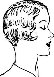 Keywords: woman side profile face head eyes closed short hair style black and white lady girl